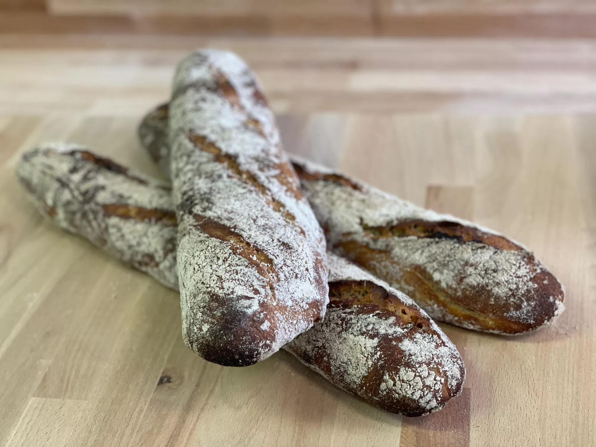Klassiskt ljust surdegsbröd (typ "Levain") med vete, råg, vatten och salt
