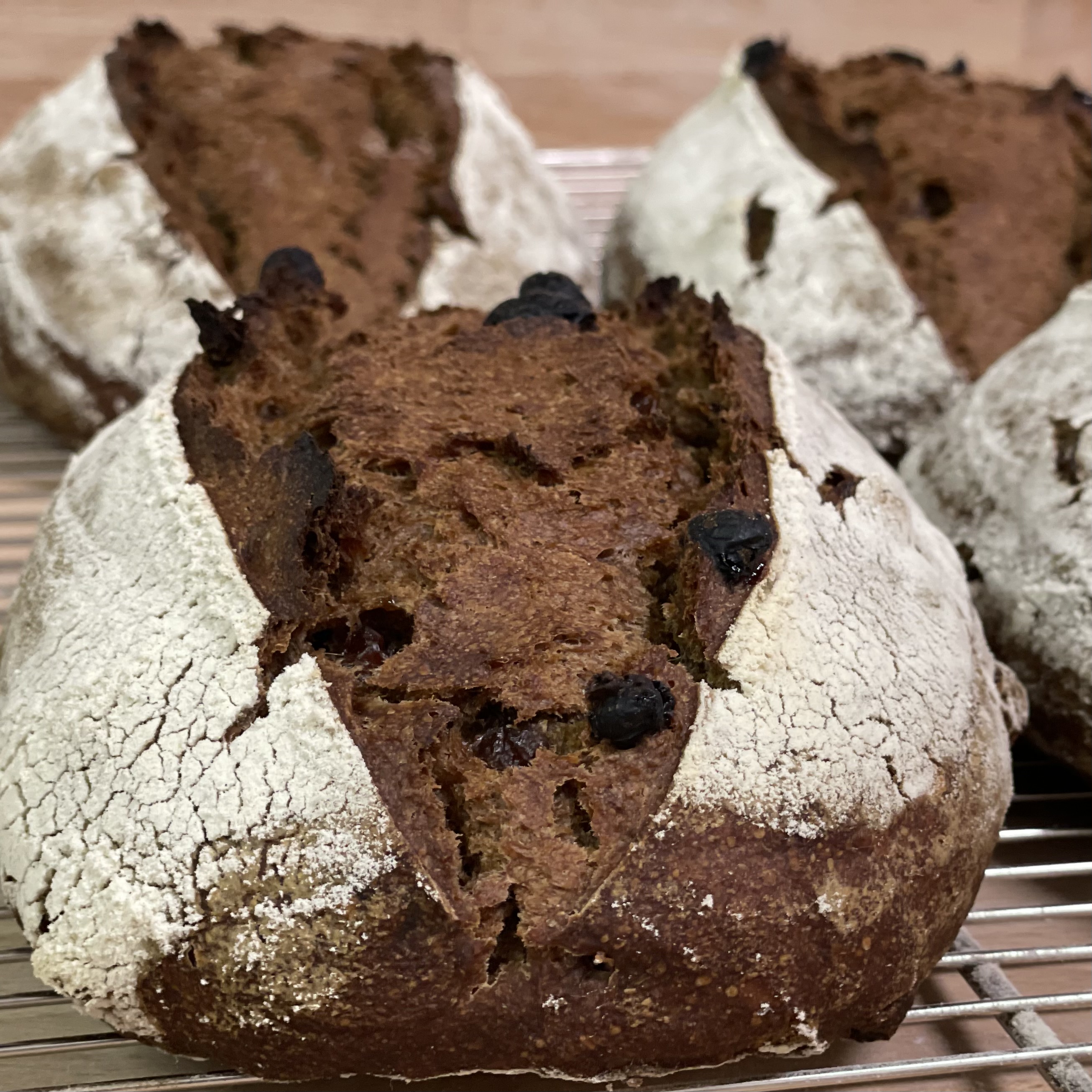 Ett vörtbröd av surdeg med vete, fullkornsråg, vatten, russin, sirap, vört, salt och kryddor (stjärnanis, nejlika, kardemumma, ingefära o pomerans)